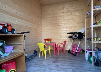 Na zahradu jsme instalovali nové prvky, děti si mohou užít zábavu na workoutové prolézačce, houpačkách, dřevěných prvcích nebo si vypůjčit hračky z herničky. Vybavení apartmánů jsme rozšířili o kávovar, toustovač, zdravotní matrace a polštáře, vysoušeče lyžařských bot a nové stolní hry.